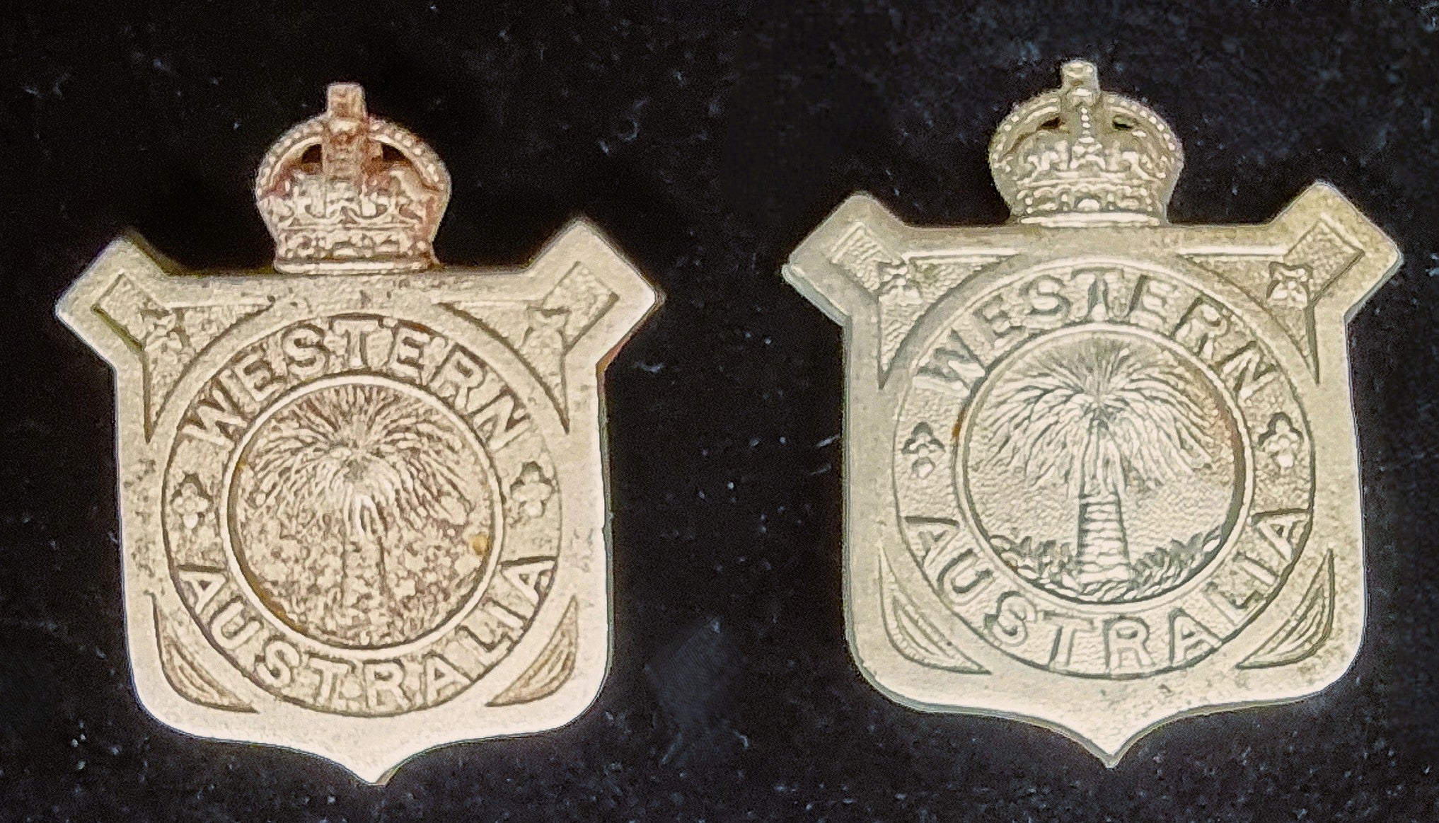 An extremely rare pair of first pattern WHITE METAL WEST AUSTRALIAN INFANTRY REGIMENT 1900-12 period. Cossum 45
